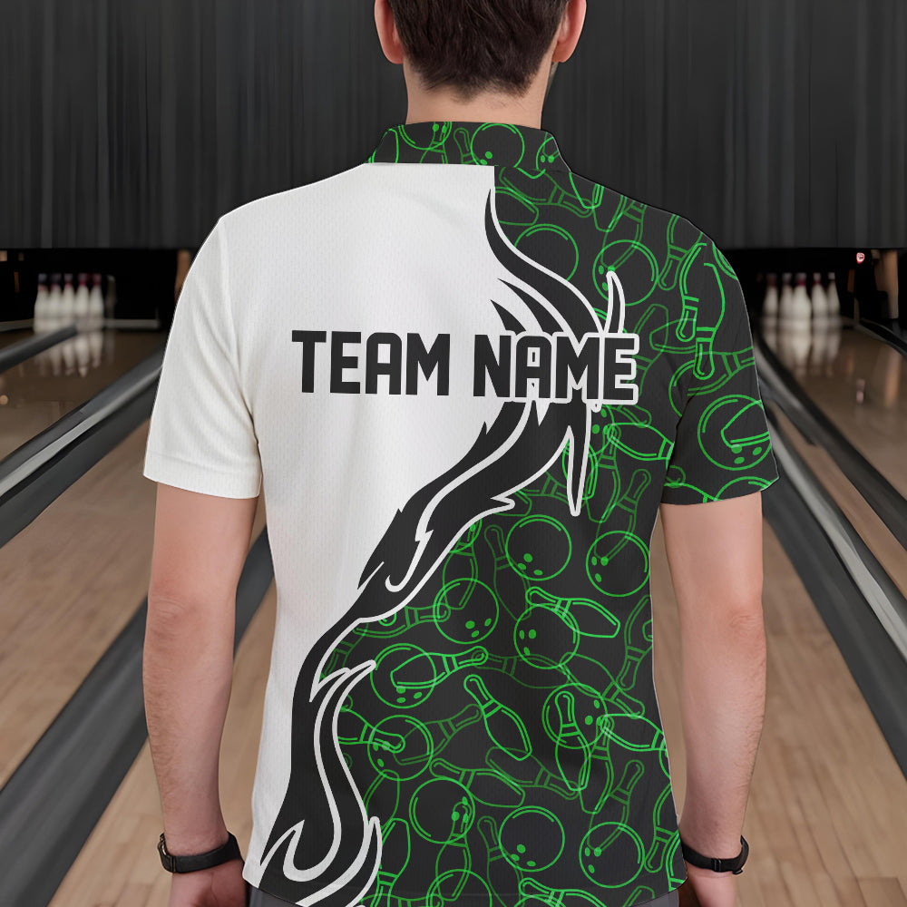 Black And Green Bowling Pattern Custom Bowling Team Men Polo Shirts, Bowling League Shirt IPHW8867