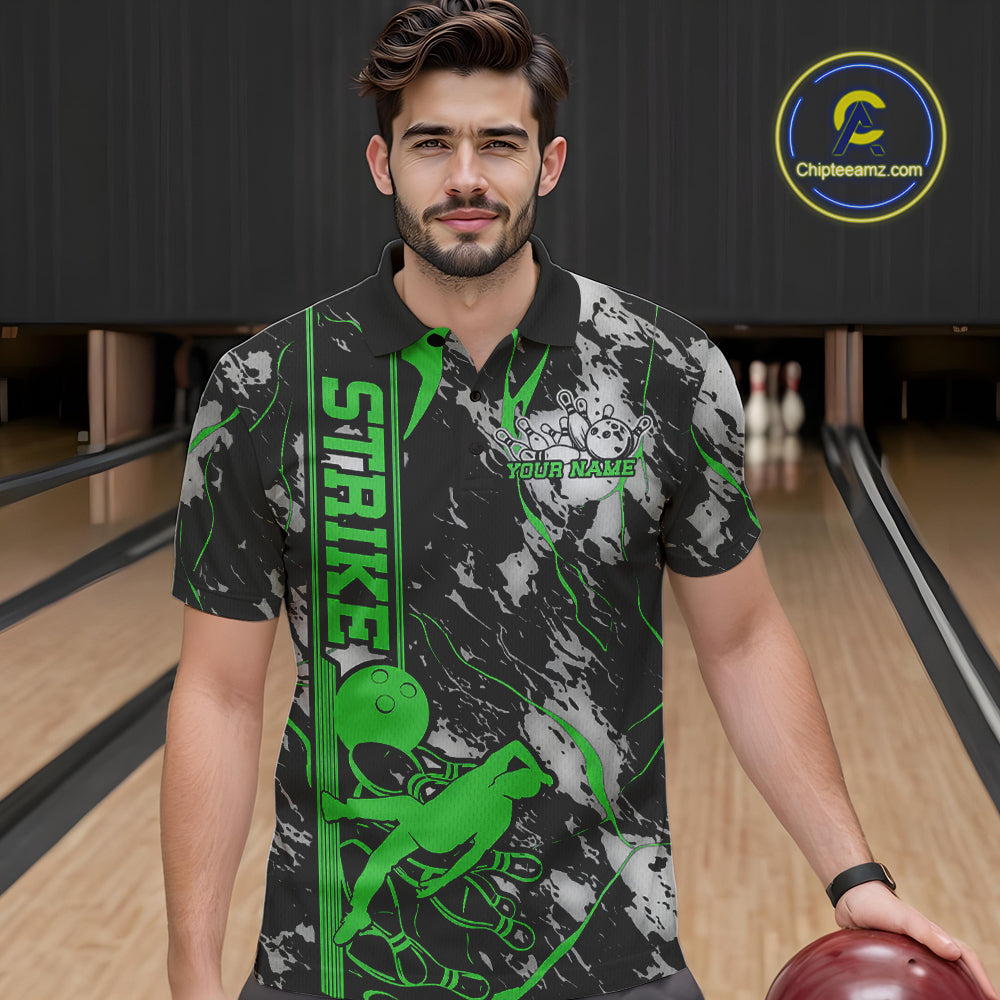 Custom Green And Gray Camo Strike Bowling Polo Team Shirts For Men, Strike Bowling Jersey IPHW9243
