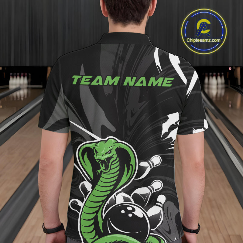 Custom Green Cobra Snake Bowling Team Jerseys, Bowling Polo Shirts For Men IPHW9709