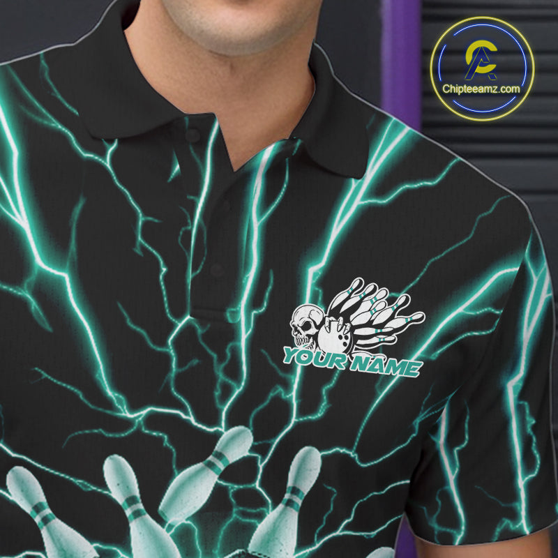 Custom Black And Green Lightning Grim Reaper Bowling Men Polo Shirt, Halloween Outfit IPHW9807