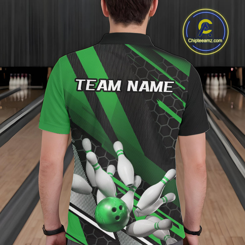 Custom Black And Green Bowling Team Jerseys, Striking Bowling League Polo Shirt For Men IPHW9808