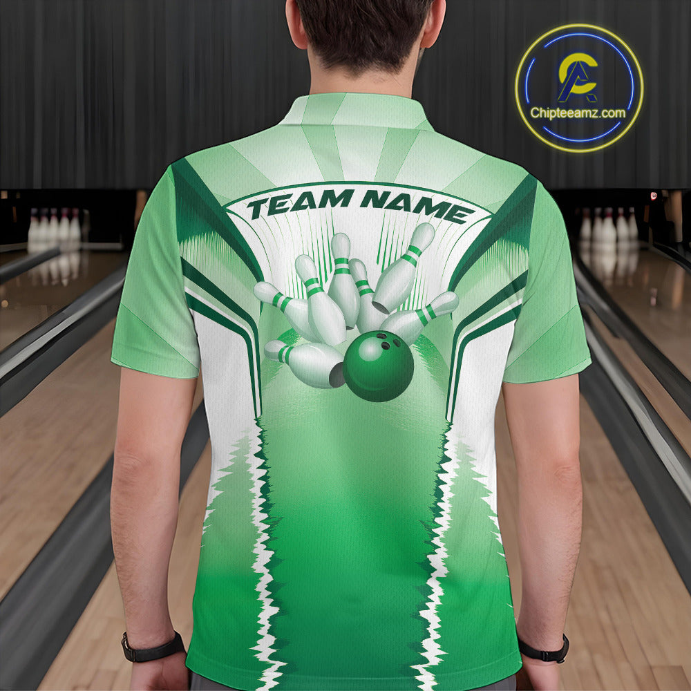 Custom Green Bowling Team Jerseys, Bowling Uniform Bowling League Polo Shirts For Men IPHW9938