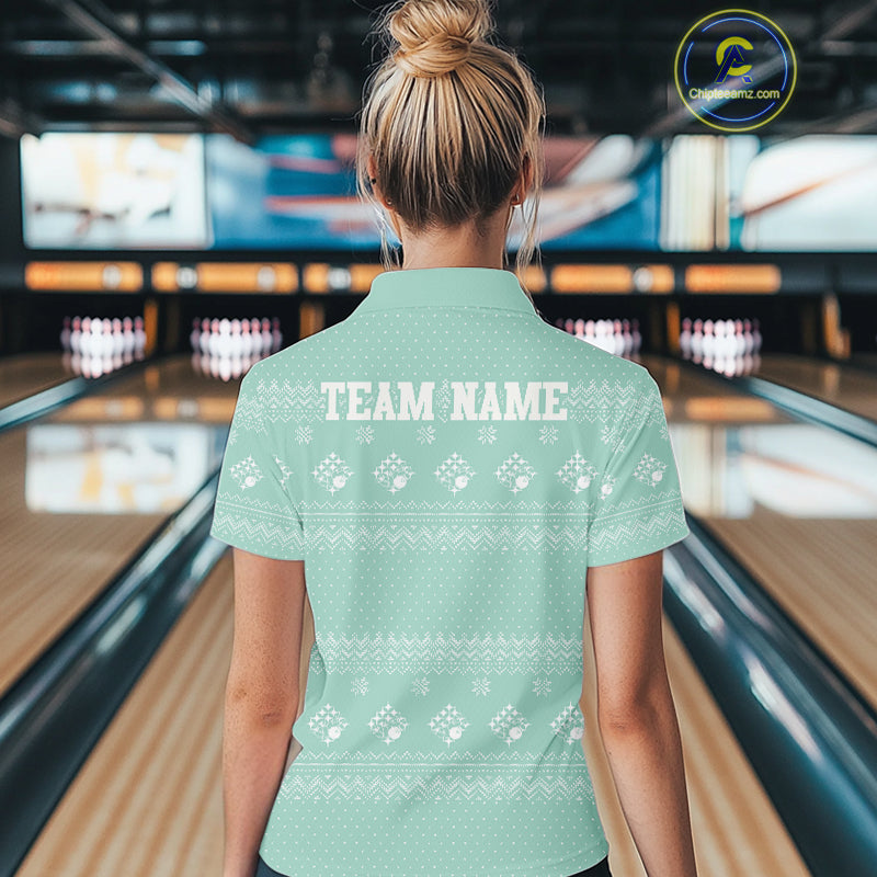Custom Funny Santa Christmas Women Bowling Polo Shirts, Mint Green Xmas Team Outfit IPHW10143