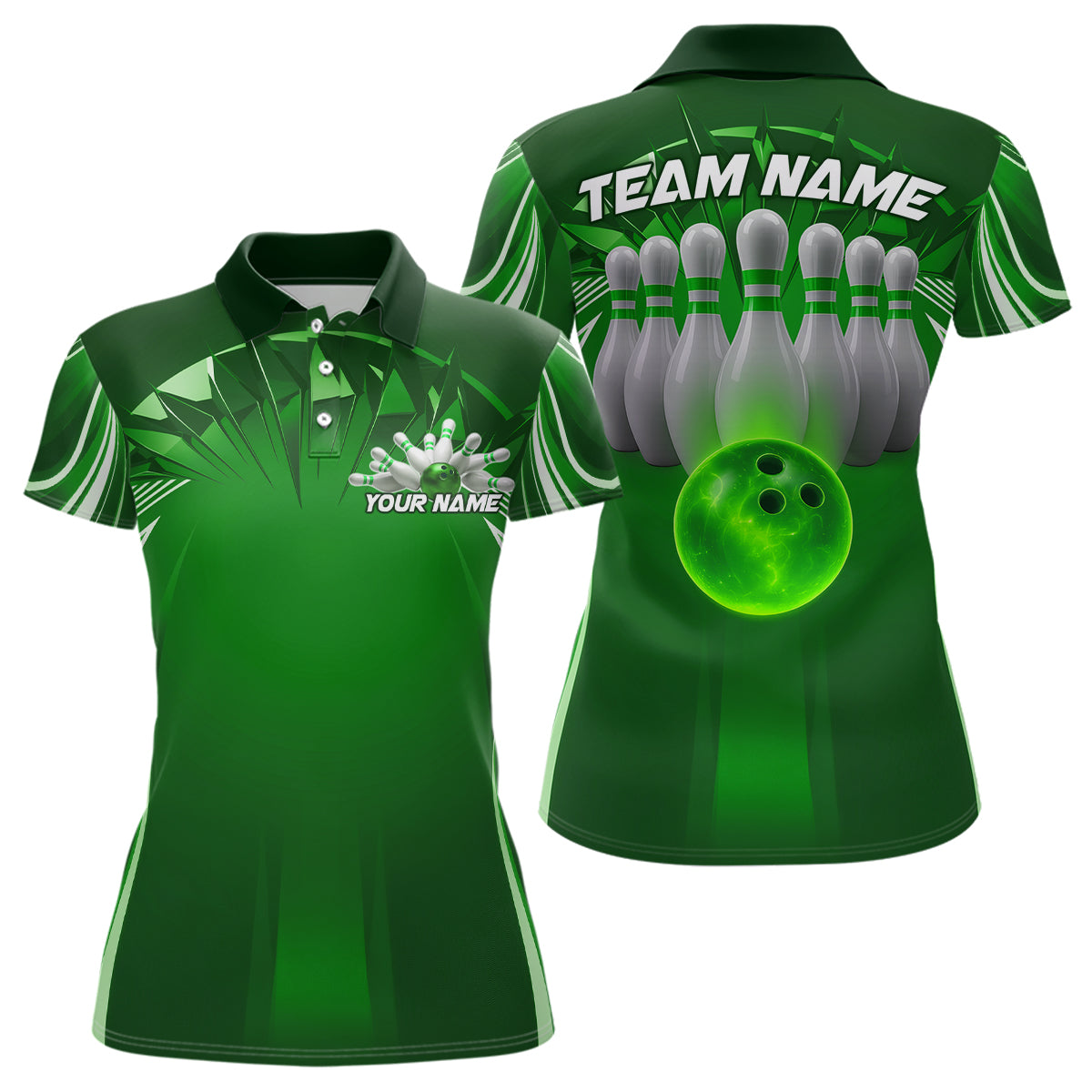 Custom Green Bowling Tournament Bowling Polo Shirts For Women With Team Name IPHW9281