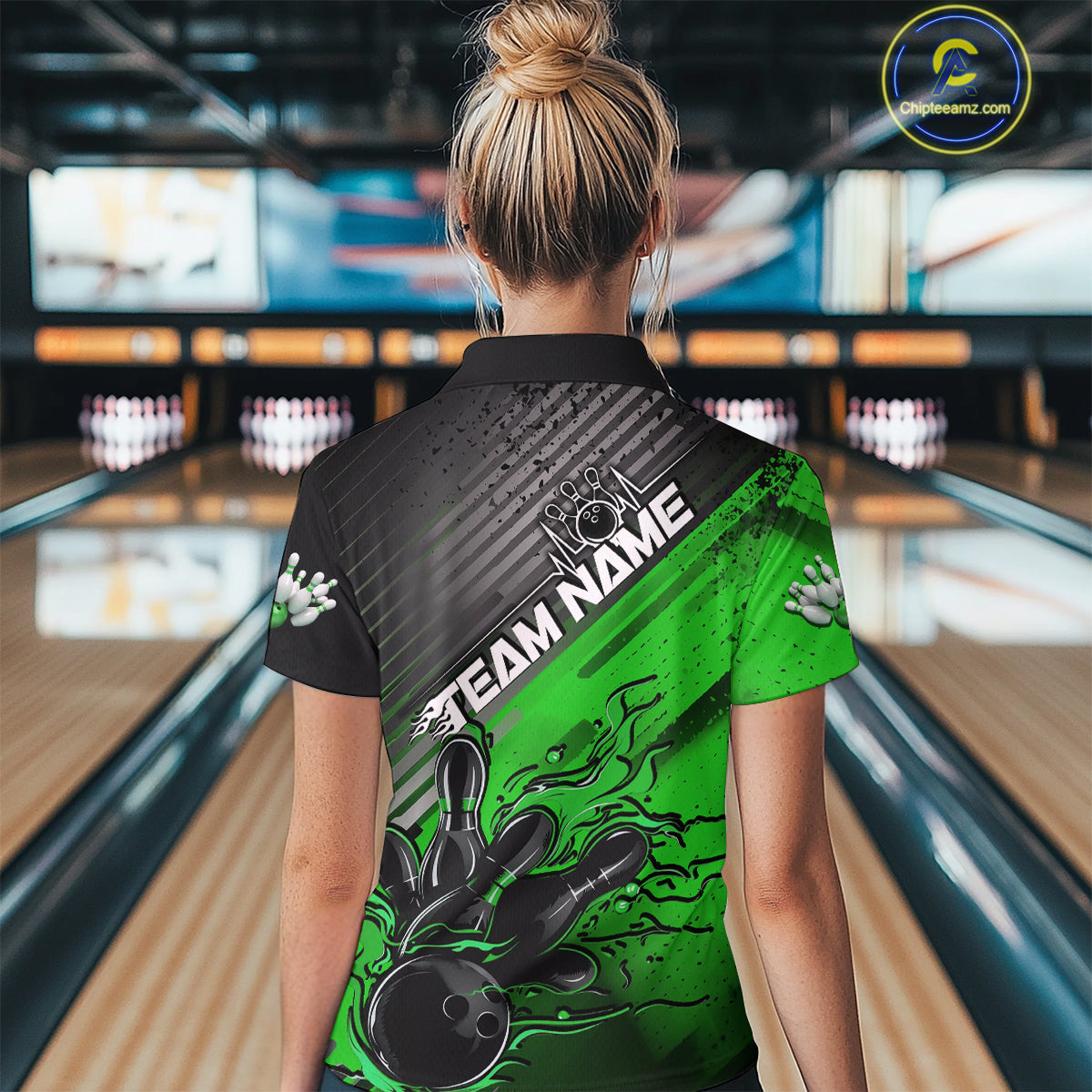 Custom Green Strike Flame Bowling Polo Shirt For Women, Bowling Team Shirt Bowlers Outift IPHW9616