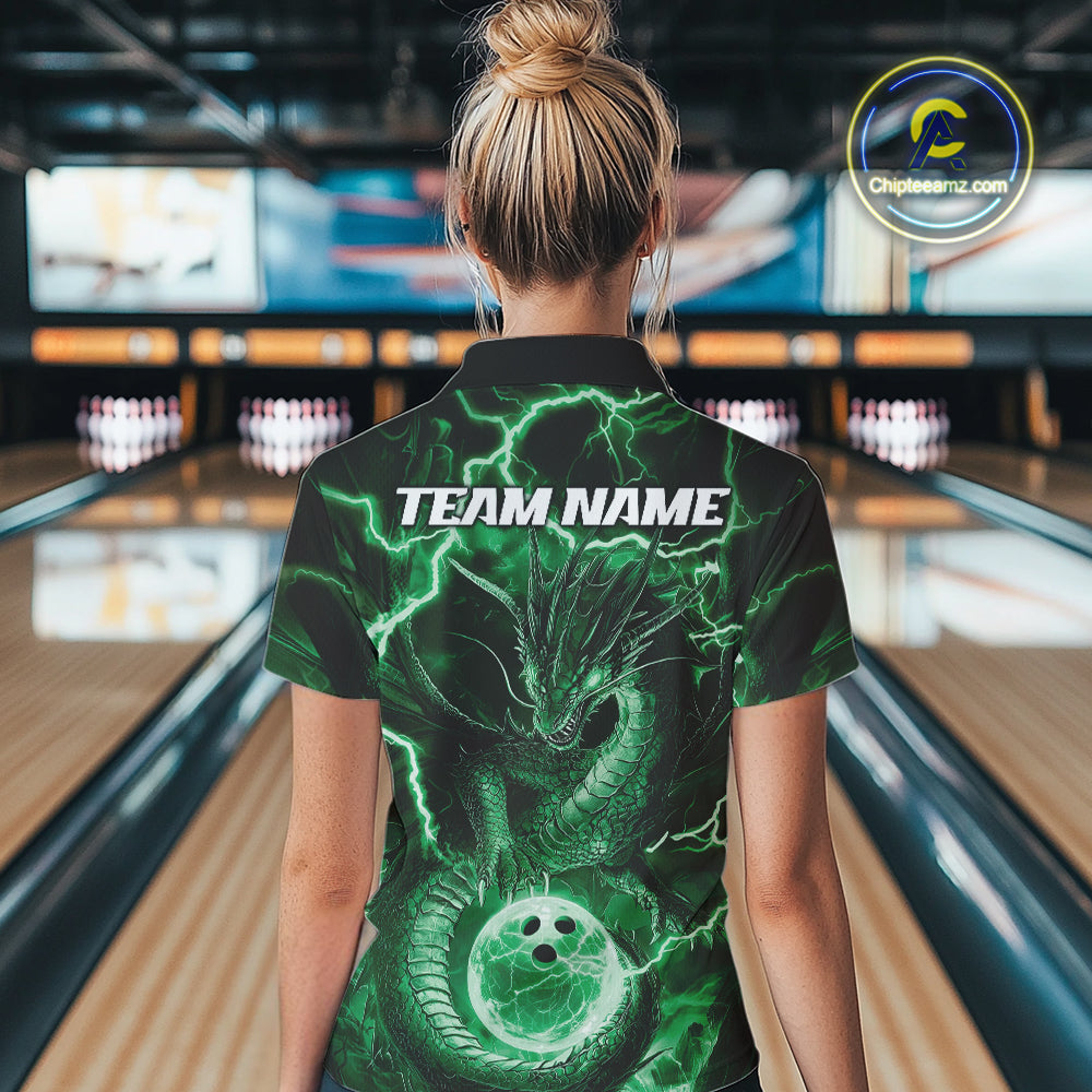 Custom Green Thunder Lightning Dragon Bowling Polo Shirts For Women, Team Uniform IPHW9759