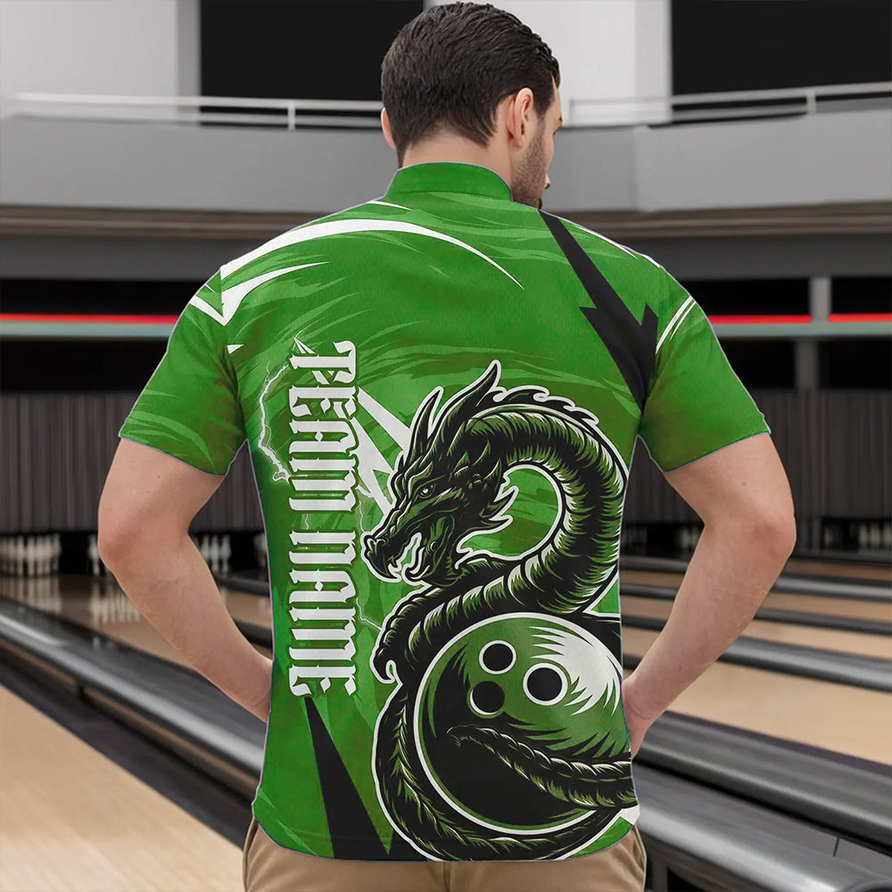 Custom Black And Green Thunder Lightning Dragon Bowling Jerseys Bowling Quarter-Zip Shirts For Men IPHW8660
