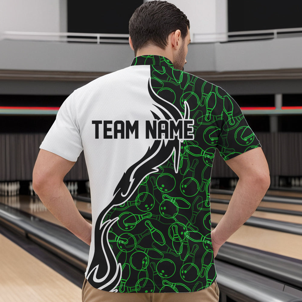 Black And Green Bowling Pattern Custom Bowling Team Men Quarter-Zip Shirts, Bowling League Shirt IPHW8867