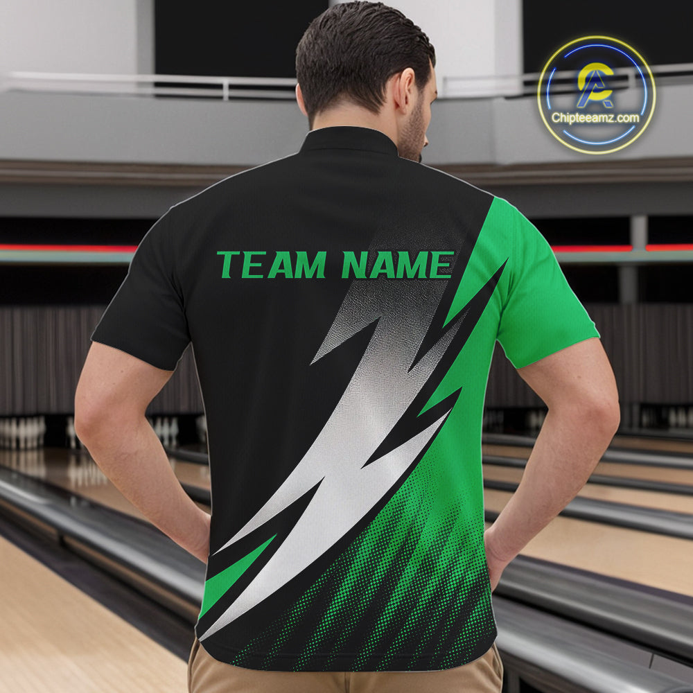 Black And Green Custom Bowling Jerseys, Men Quarter-Zip Shirt Bowling Tournament Outfits IPHW9079