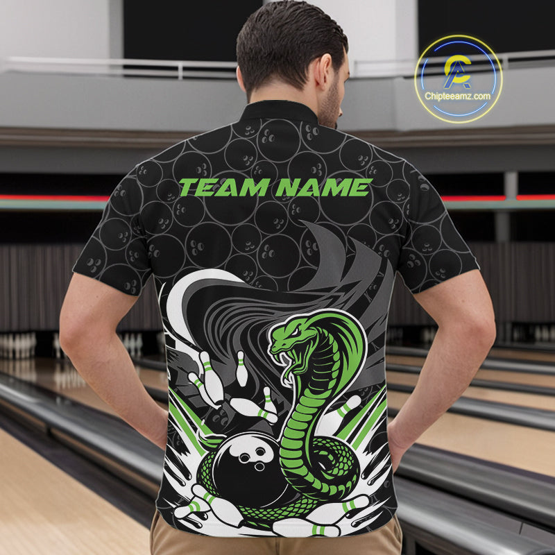 Custom Black And Green Cobra Snake Bowling Quarter-Zip Shirts For Men, Cobra Bowling Team Shirt IPHW9701