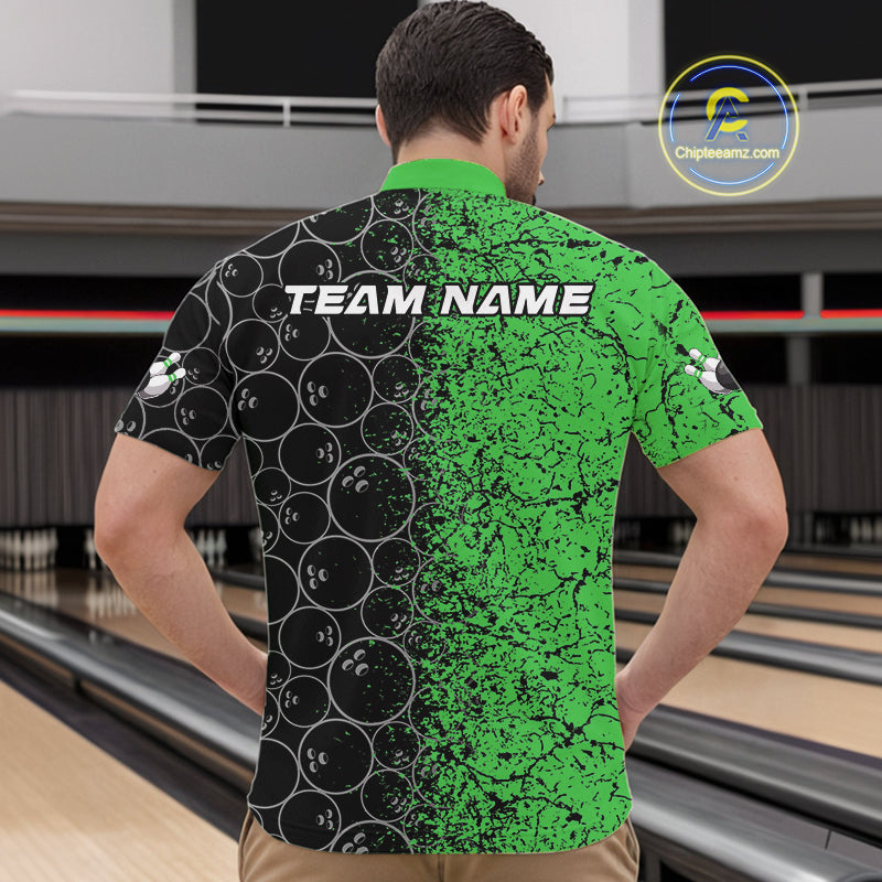 Custom Black And Green Splatter Bowling Ball Pattern Bowling Team Quarter-Zip Shirts For Men IPHW9792