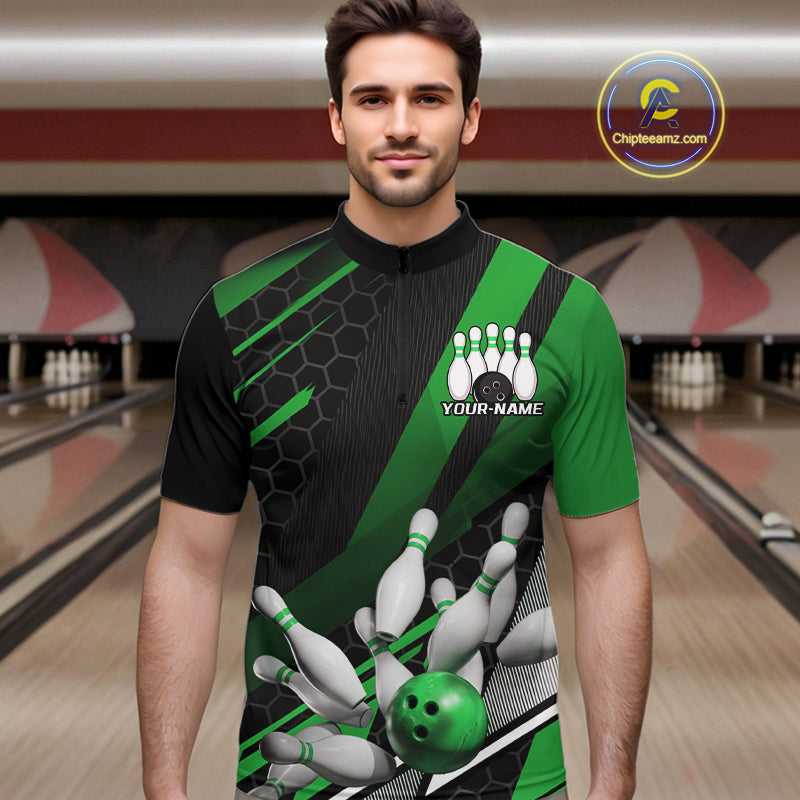 Custom Black And Green Bowling Team Jerseys, Striking Bowling League Quarter-Zip Shirt For Men IPHW9808