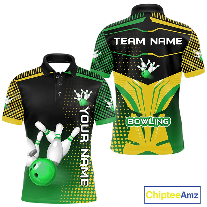 Yellow and Green pattern Bowling shirts For Men Custom Team Bowling Jerseys, Gift For Bowler NQS11244