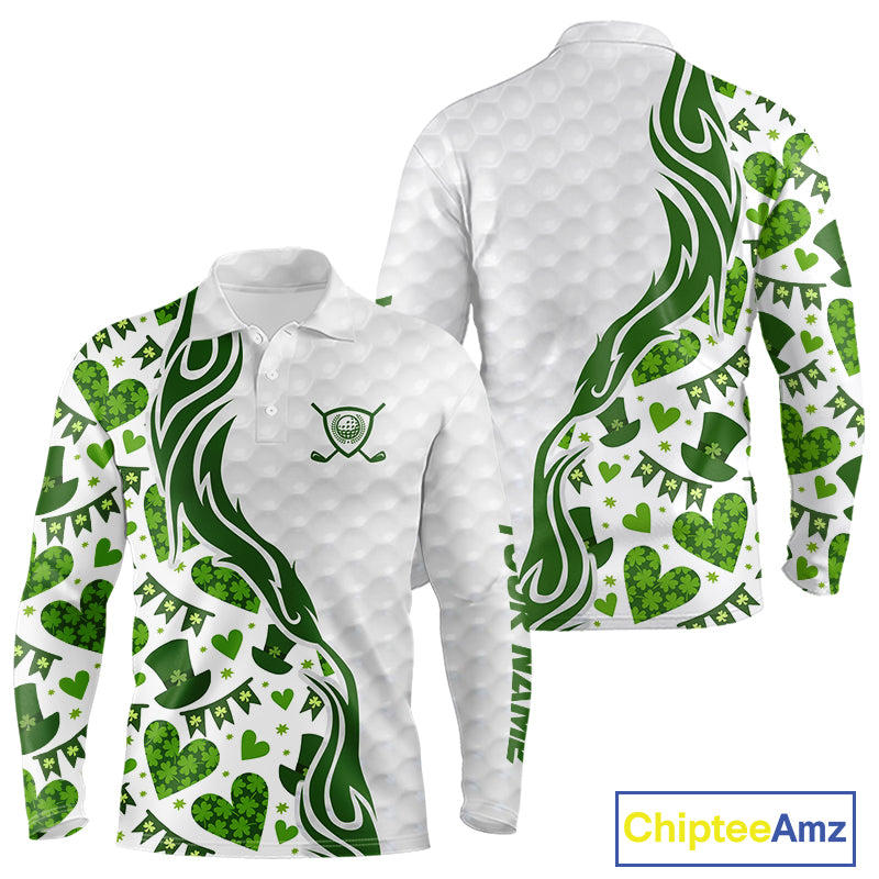 Custom White and Green St Patrick's day pattern Golf Polo Shirts For Men, team mens golf outfit NQS11209