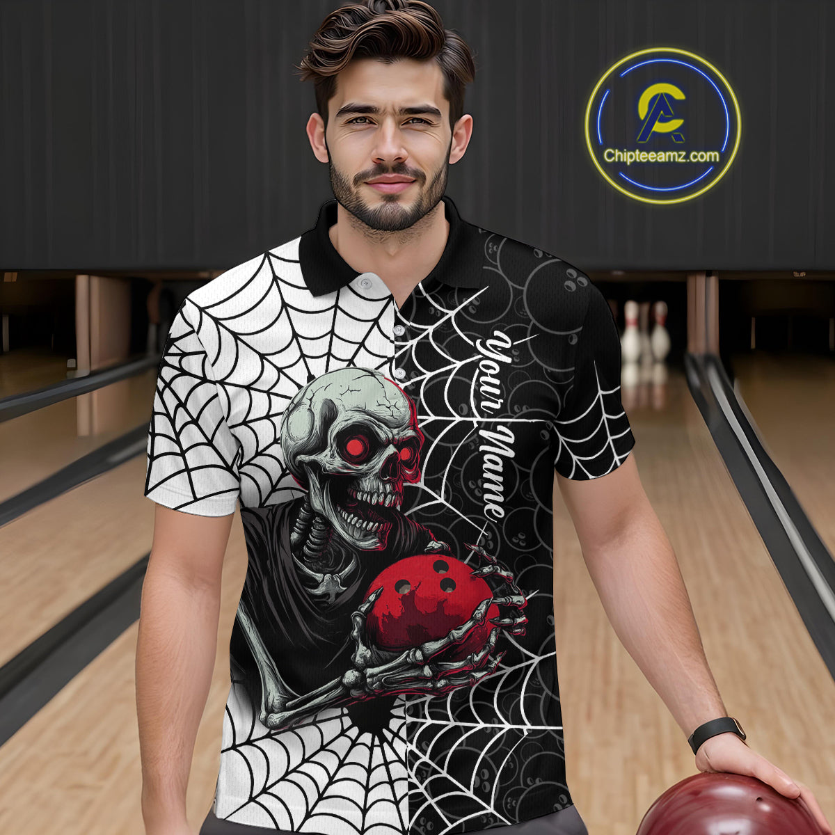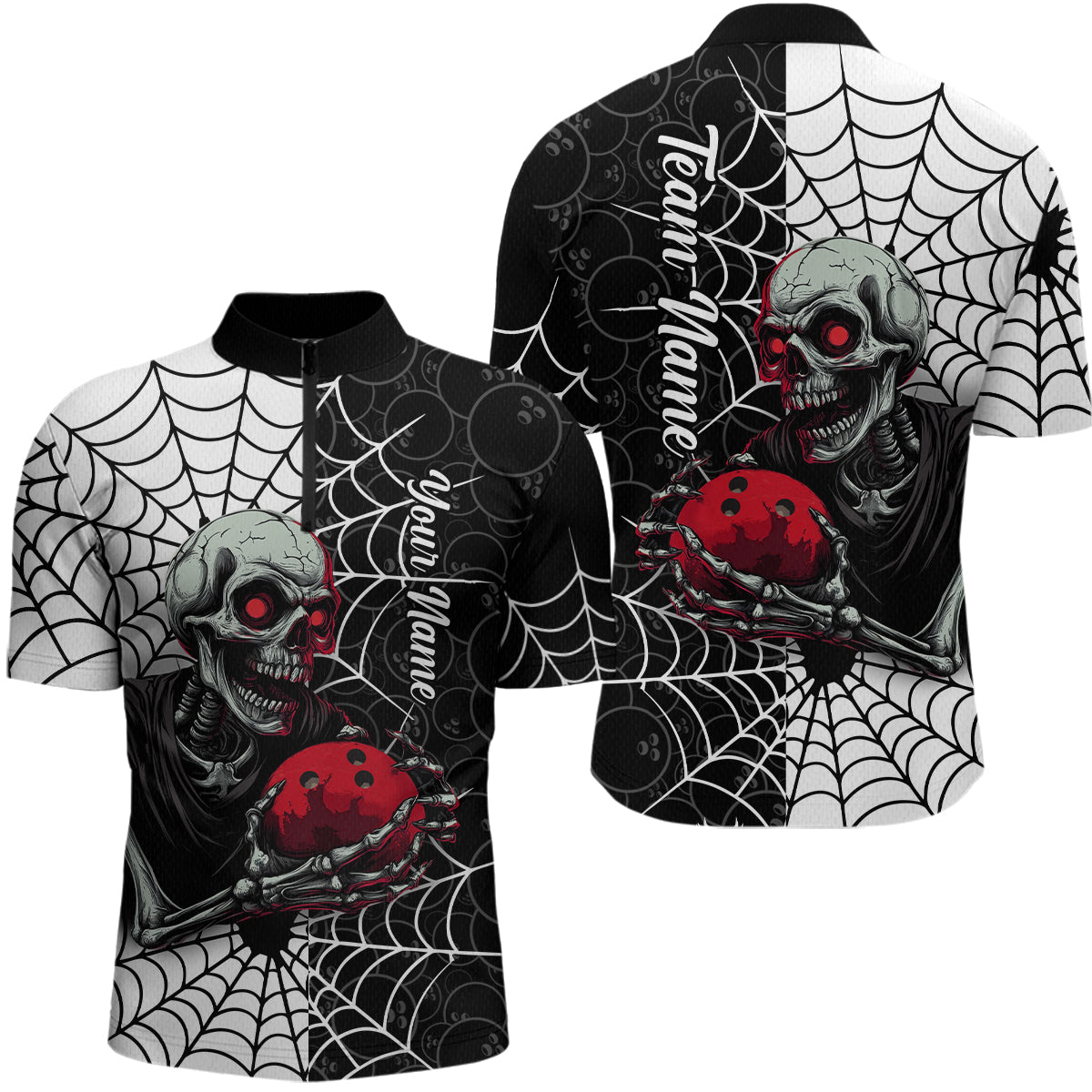 Black and White Skull Bowling Team Shirt Custom Spider Bowling Jersey Men Halloween Bowling Outfit QZT748
