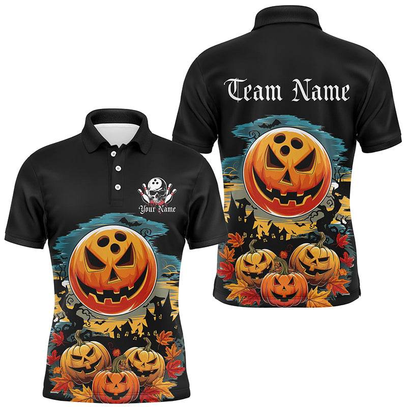Custom Halloween Bowling Shirts For Men, Pumpkin Bowling Ball Bowling Team Halloween Outfit IPHW7597