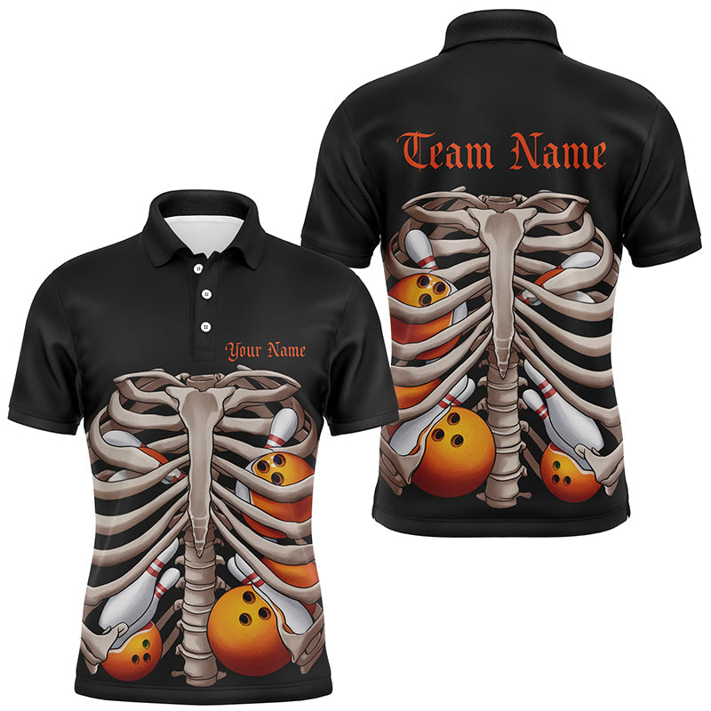 Bowling Balls And Pins Inside The Rib Cage Custom Halloween Skeleton Shirts For Men IPHW7601