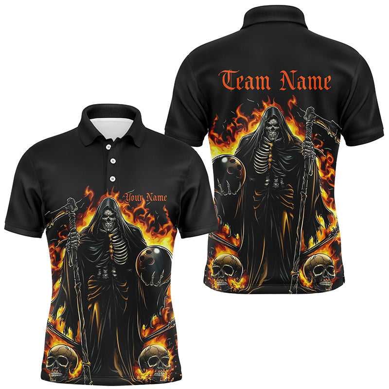 Custom Grim Reaper Flame Bowling Shirts For Men, Unisex Bowling Team Shirts Halloween Outfit IPHW7633