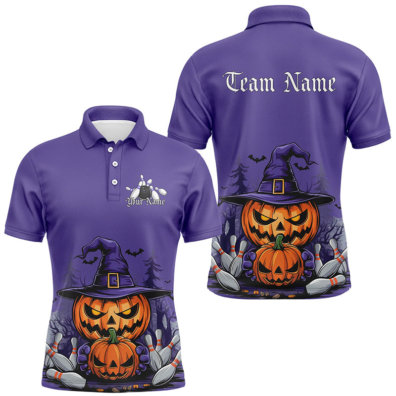 Purple Custom Halloween Bowling Shirts For Men, Pumpkin Bowling Team Shirt Halloween Outfit IPHW7648