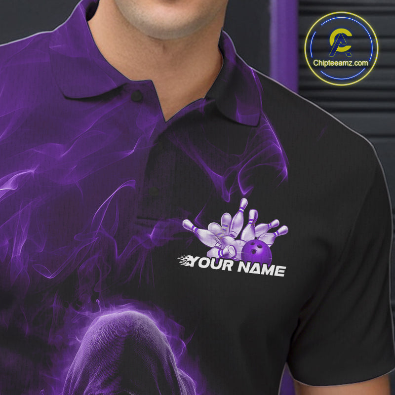 Custom Black And Purple Smoke Flame Grim Reaper Halloween Bowling Men Polo Shirts IPHW9740