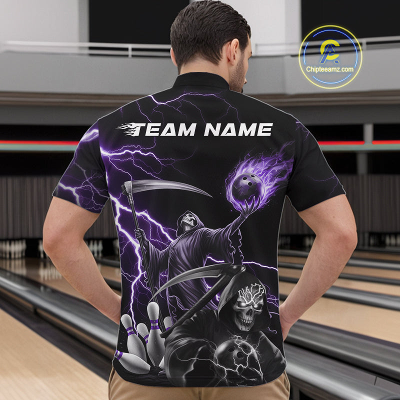 Custom Purple Lightning Grim Reaper Skull Bowling Men Quarter-Zip Shirt, Halloween Outfit IPHW9849