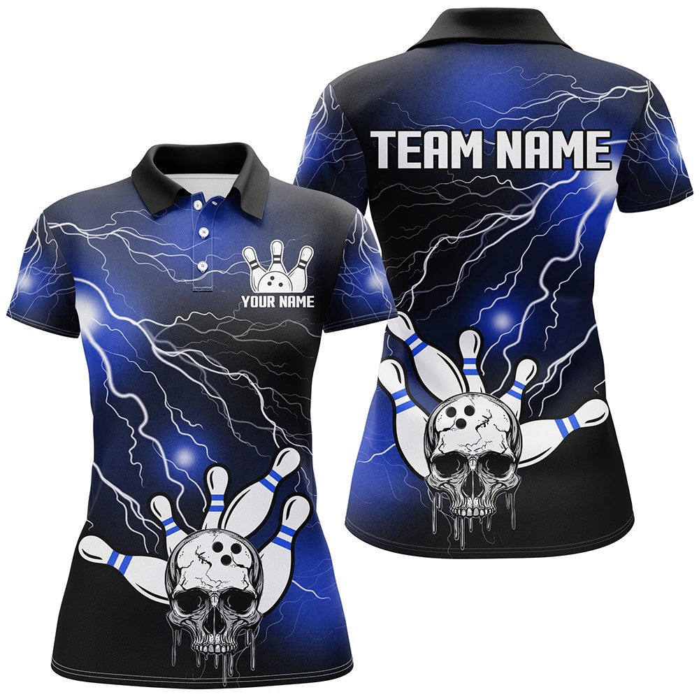 Skull Bowling Polo Shirt For Men & Women Light Thunder Blue Bowling Team Jersey Halloween BDT541