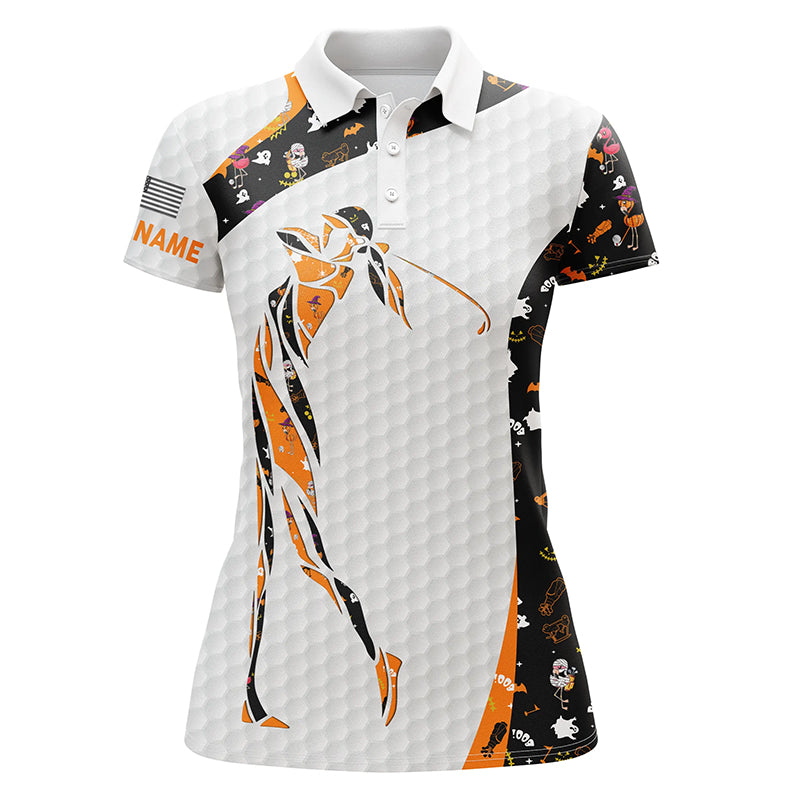 Personalized black Halloween pattern white Womens golf polo shirts custom name Halloween golf gift NQS6304