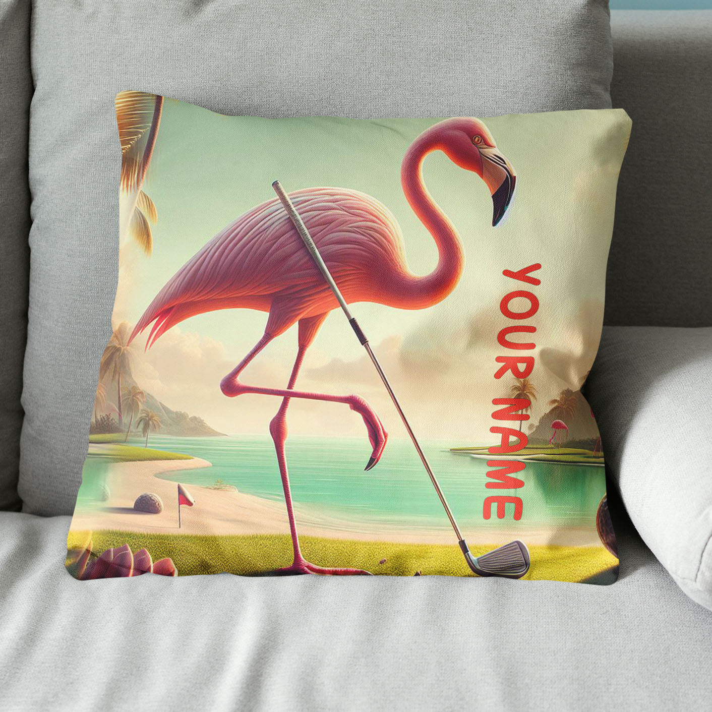 Golf Flamingo Tropical Custom Pillow Personalized Golf Gifts For Golfer LDT1169