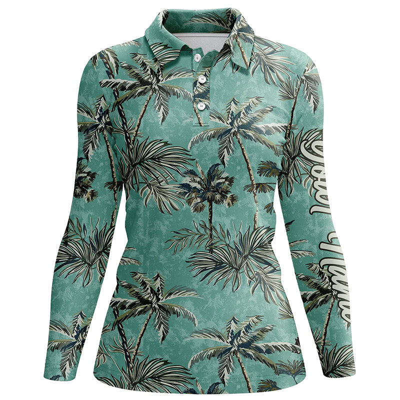 Green Tropical palm trees pattern Womens golf polo shirts custom team golf shirt womens NQS5724