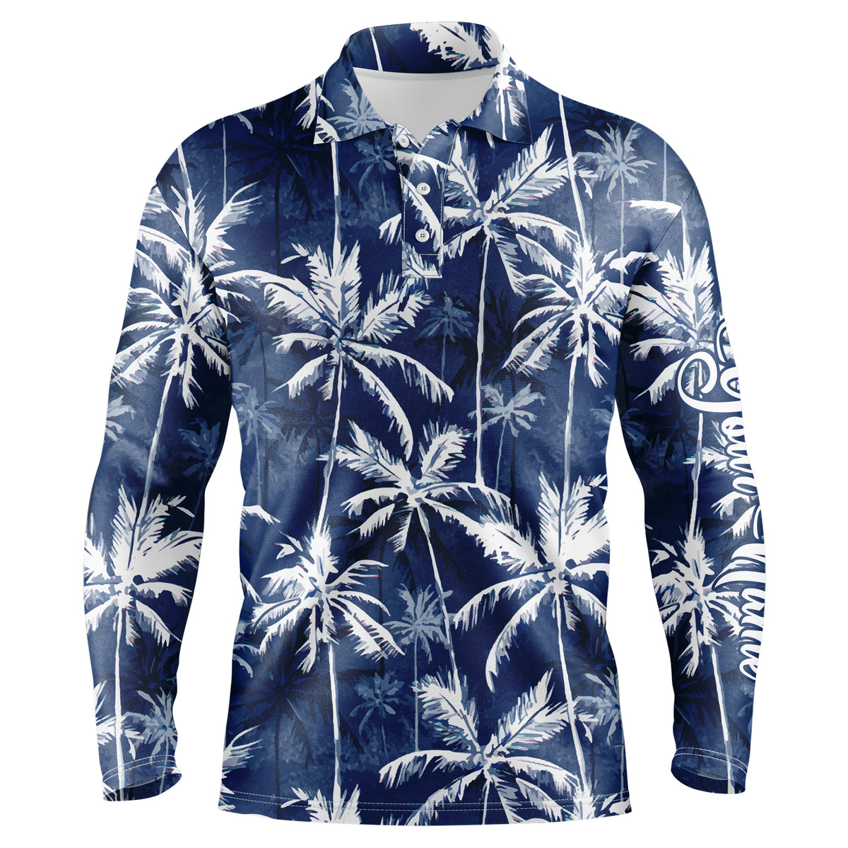 Men golf polo upf shirts with tropical background blue watercolor palms custom team golf polo shirts NQS3711