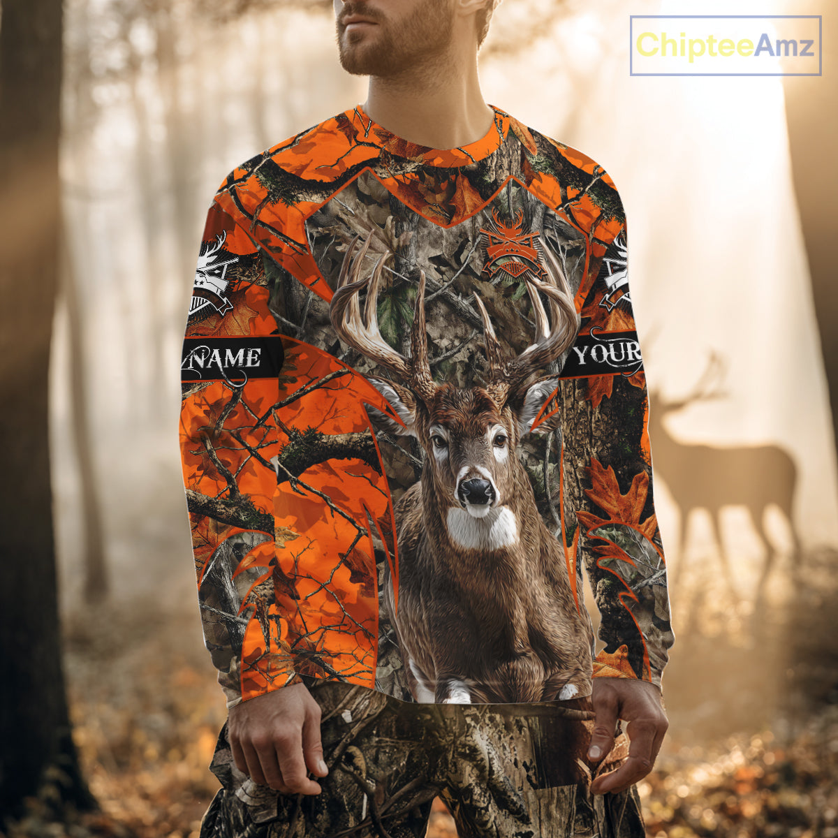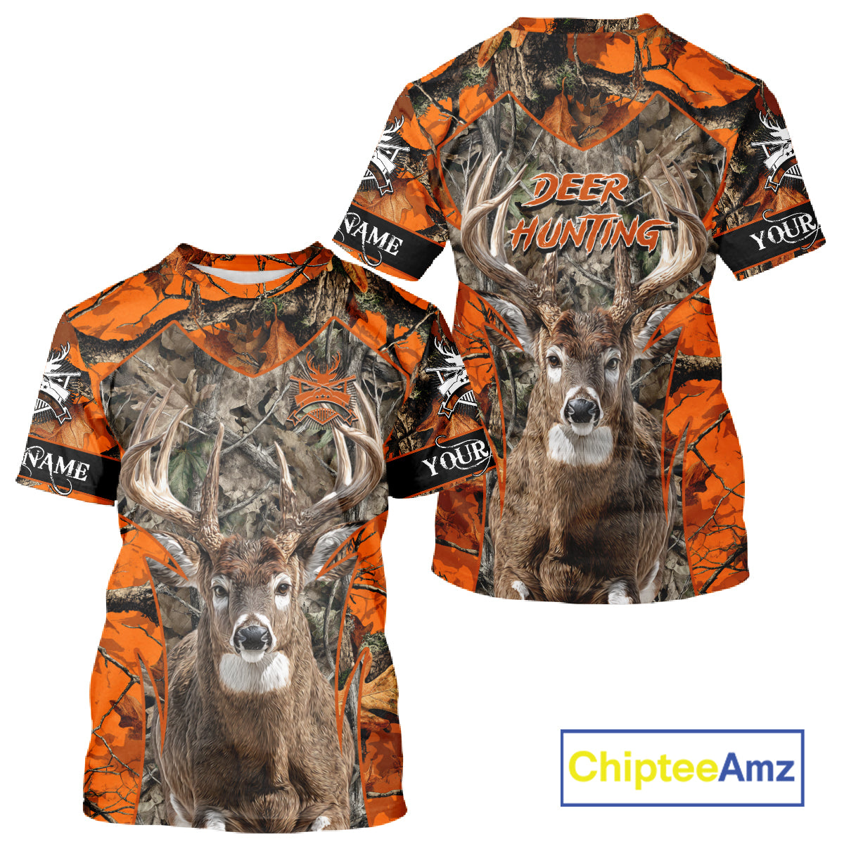 Whitetail Deer Hunting Orange Forest Camo 3D Printed Shirts, Hunting Hoodie Gift for Men NBT319