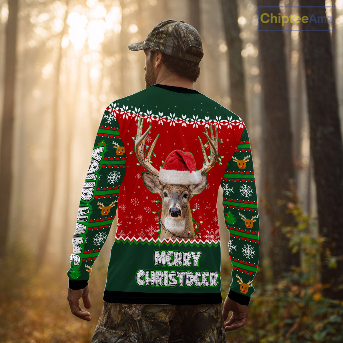 Funny Ugly Christmas Pattern Deer Hunting Custom Name 3D All Over Print Shirts Christmas Shirt NBT285