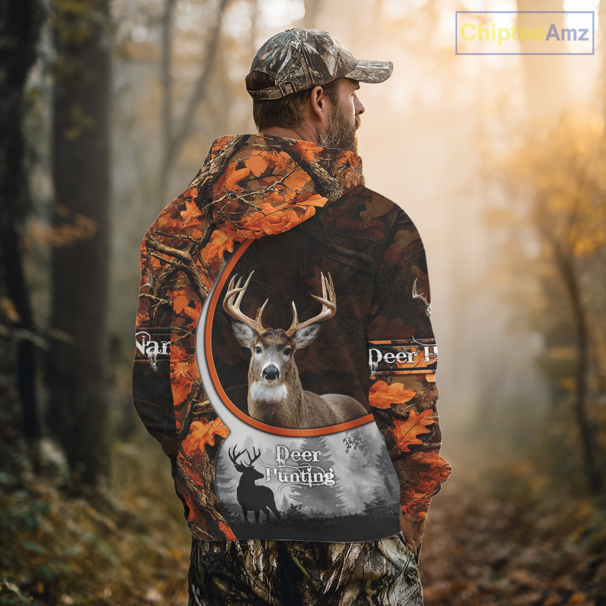 Personalized Deer Hunting 3D All Over Printed Hoodie Orange Autumn Leaves Camo, Hunting Gift NHT322