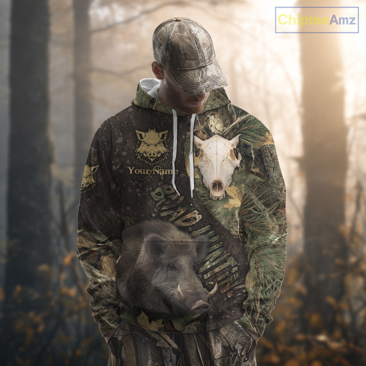 Best Wild Boar Hunting Forest Camouflage Custom Name Shirts for Hunter, Hunting Gifts NHT105