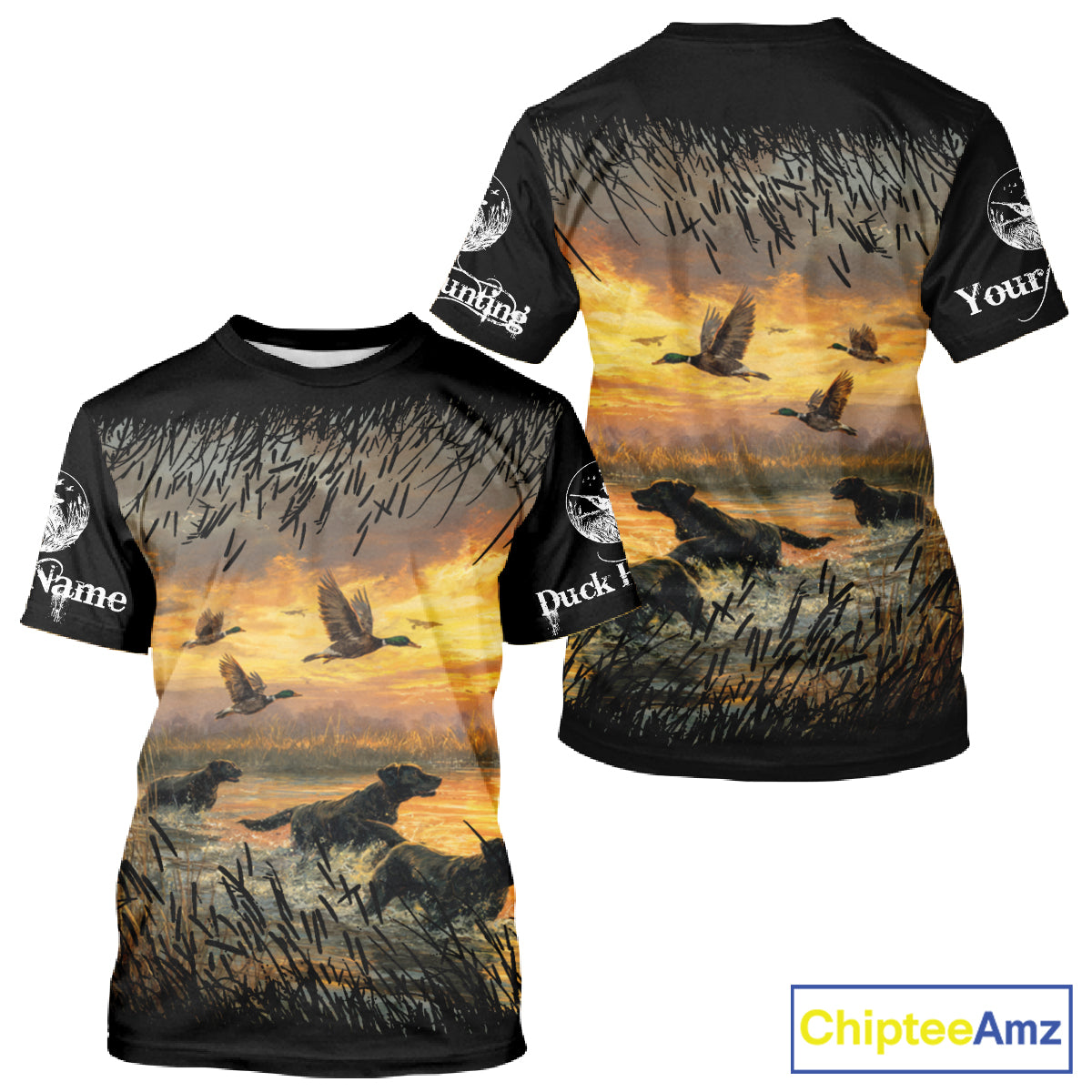 Duck Hunting Mallard Duck with Black Labrador Retriever Dog Custom Name Shirts, Hunting Gifts NBT146