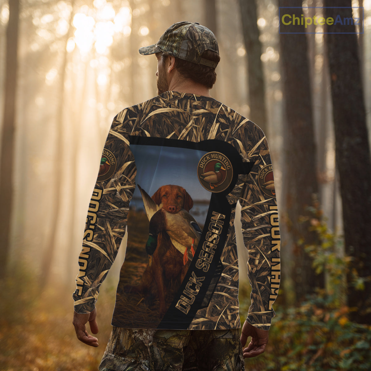 Duck Hunting Shirt Custom Name with Vizsla Dog Camo Hunting Clothes For Duck Hunters NHT153