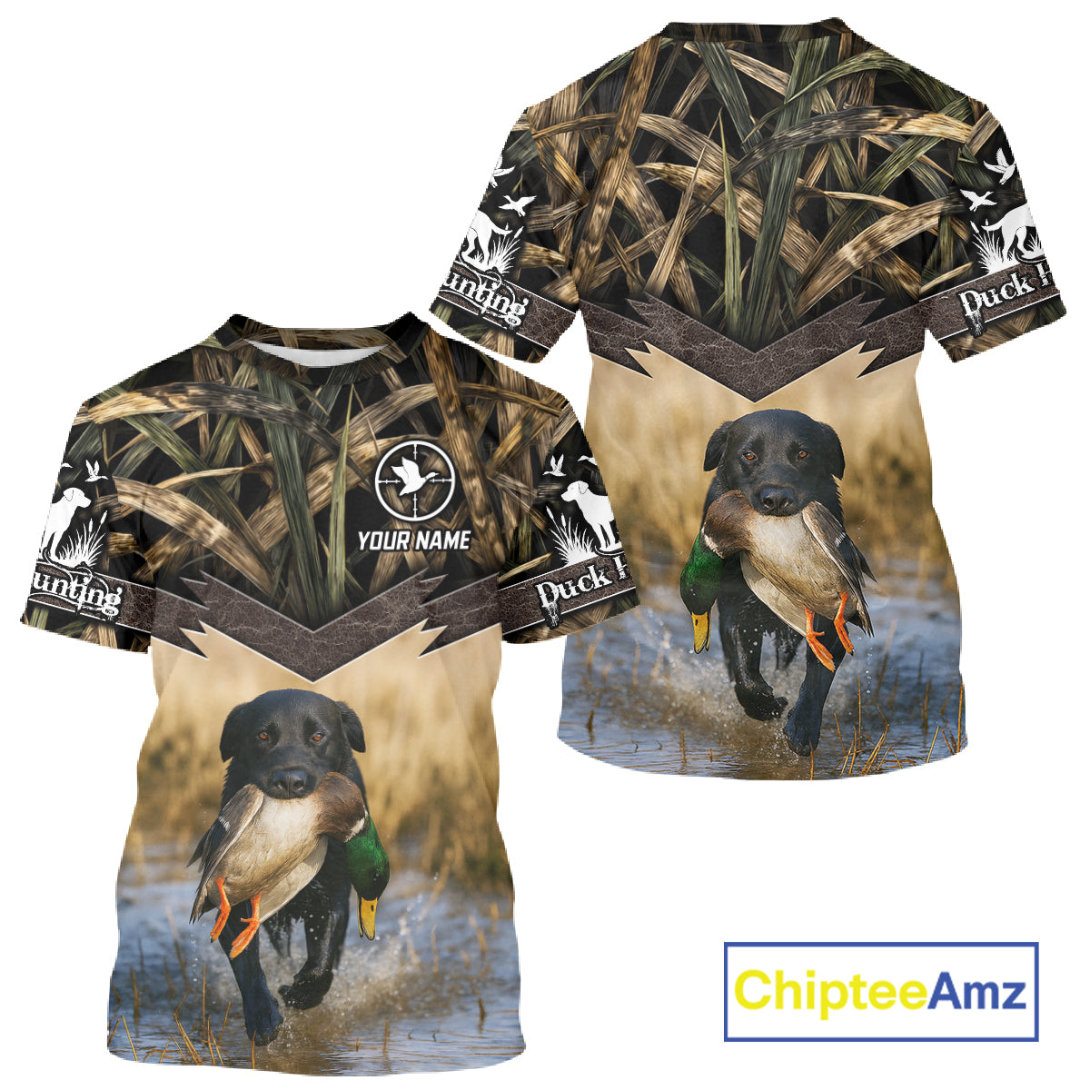 Mallard Duck Waterfowl Hunting Shirt Camo Personalized With Black Lab Dog, Hunting Shirts NHT167
