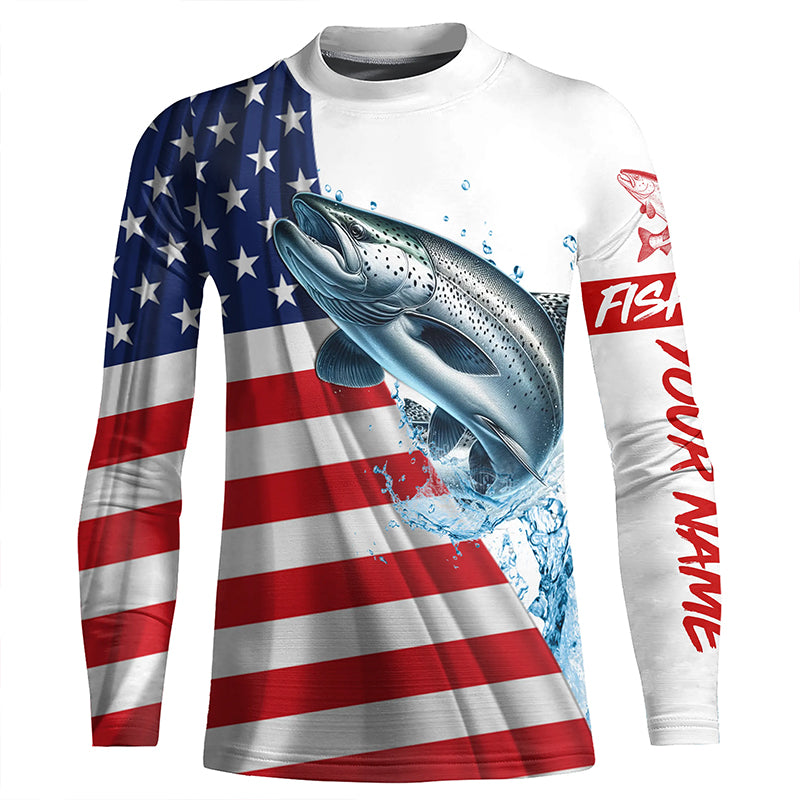 American flag patriotic Chinook salmon fishing Custom UV Protection long sleeve Fishing Shirts for men NQS5417