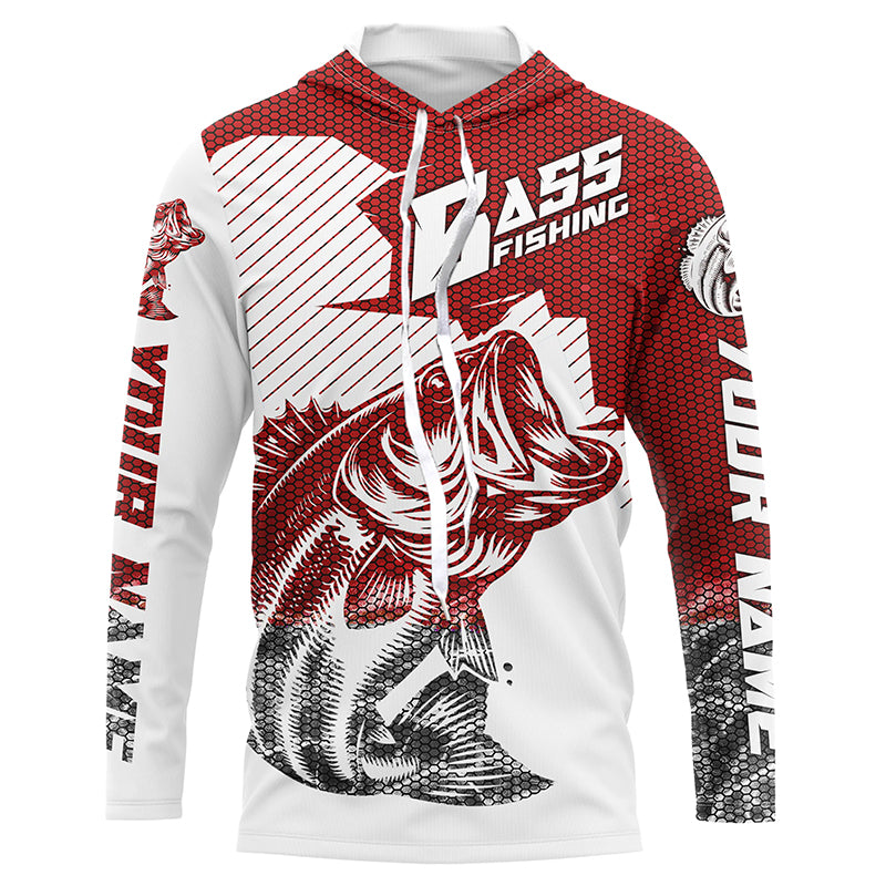 Personalized Bass Fishing Jerseys, Bass Fishing Long Sleeve Fishing Tournament Shirts | Red Camo IPHW5753