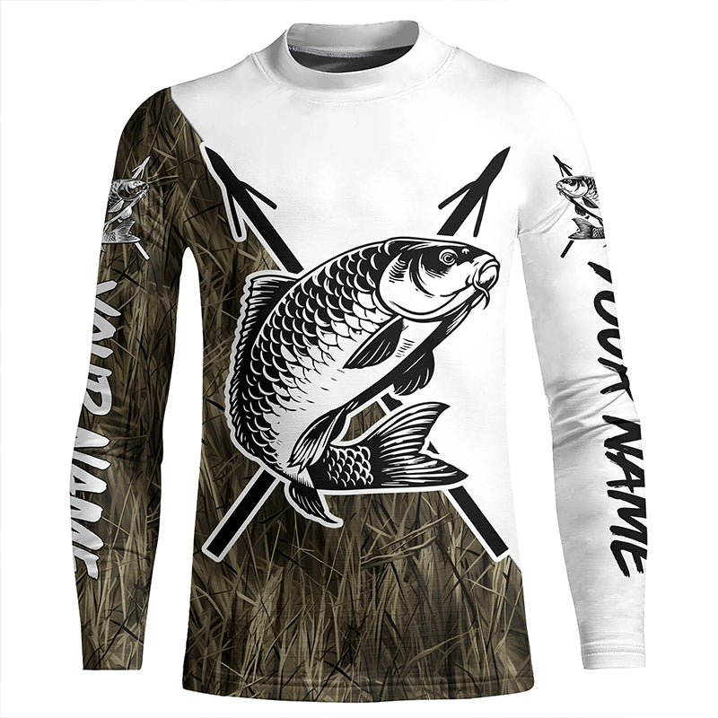 Carp Fish Bowfishing Shirts, Custom Carp Bow Fishing Long Sleeve Tournament Shirts | Grass Camo IPHW6395