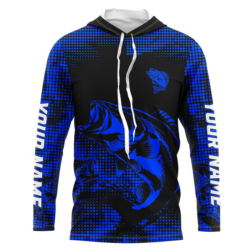 Largemouth Bass fishing jersey Custom UV protection performance bass fishing tournament shirts | Blue NQS9395