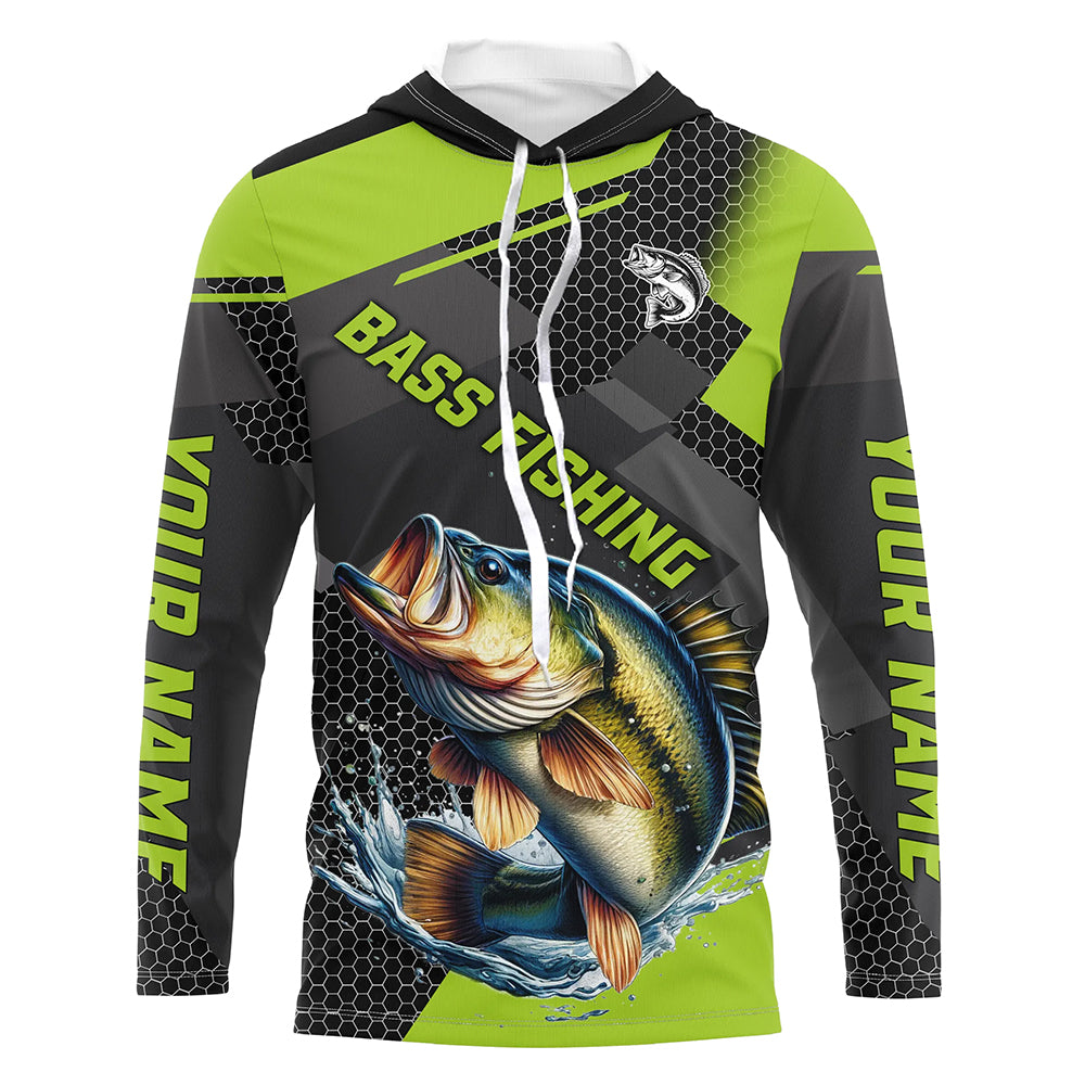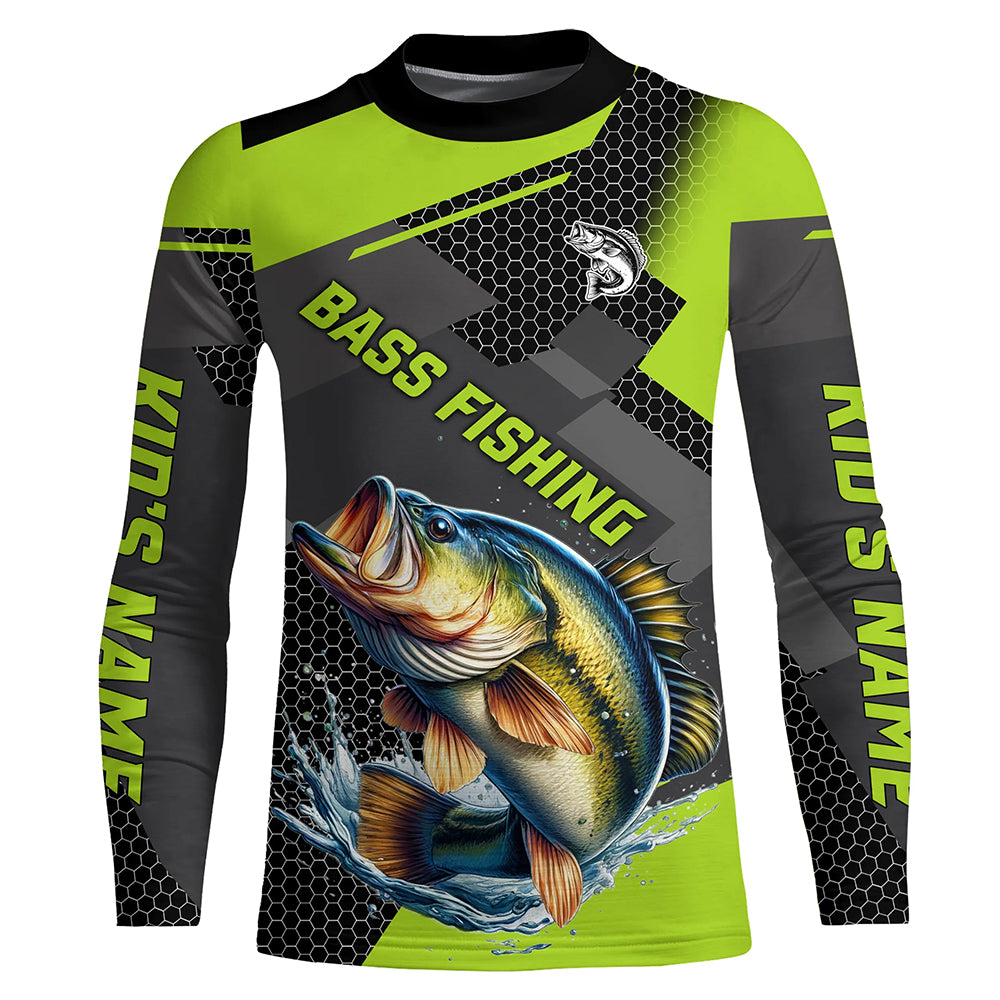 Personalized Largemouth Bass Fishing Jerseys, Bass Long Sleeve Fishing Tournament Shirts | Green NQS7779
