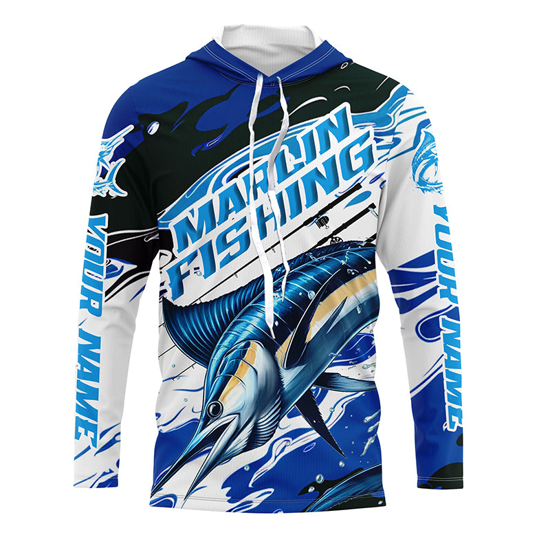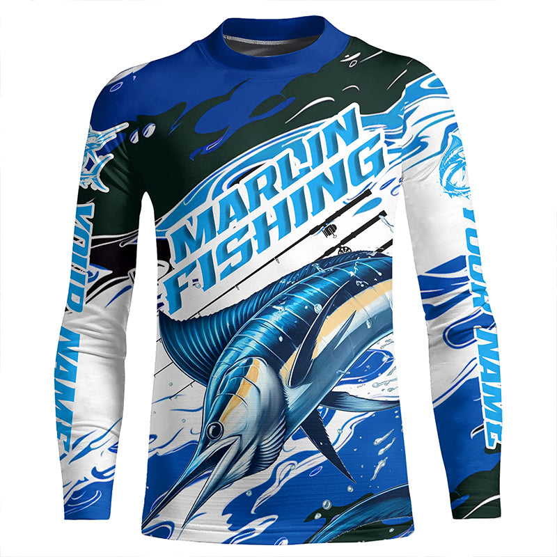 Custom Marlin Fishing Blue Camo Long Sleeve Shirts, Marlin Saltwater Fishing Jerseys IPHW6327