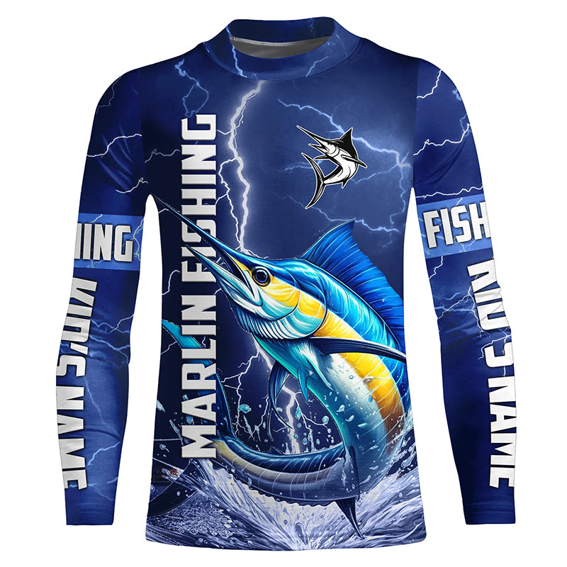 Marlin Fishing blue lightning jerseys custom performance Long Sleeve tournament fishing shirts NQS8151