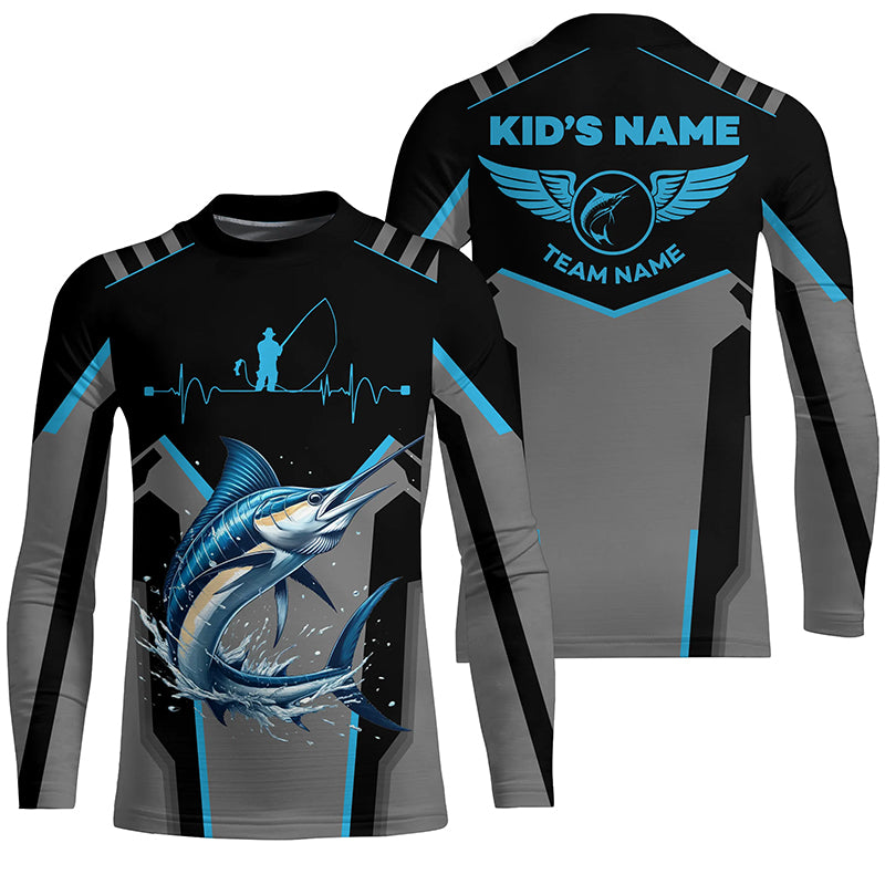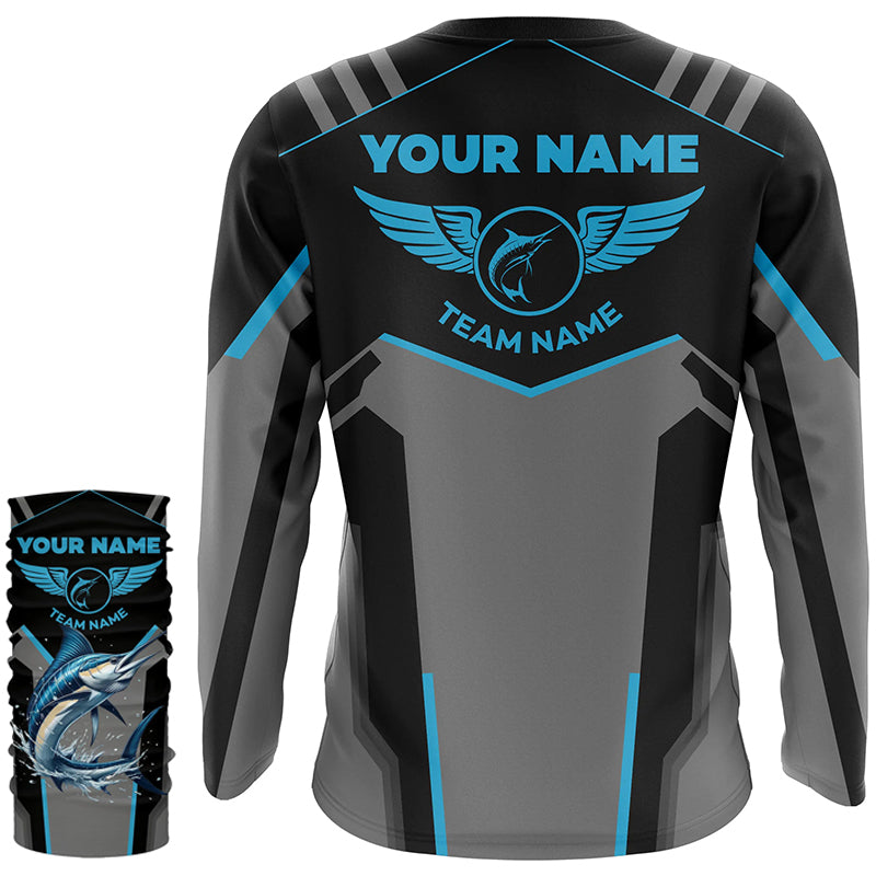 Personalized Black Marlin Fishing jerseys, Team Marlin Fishing Long Sleeve tournament shirts| Blue NQS6306