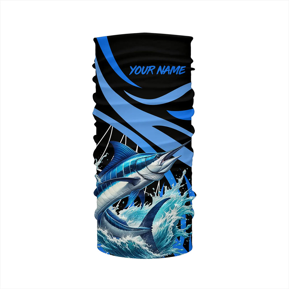 Personalized Blue Marlin Long Sleeve Fishing Shirts, Marlin Tournament Fishing Jerseys | Blue NQS7500