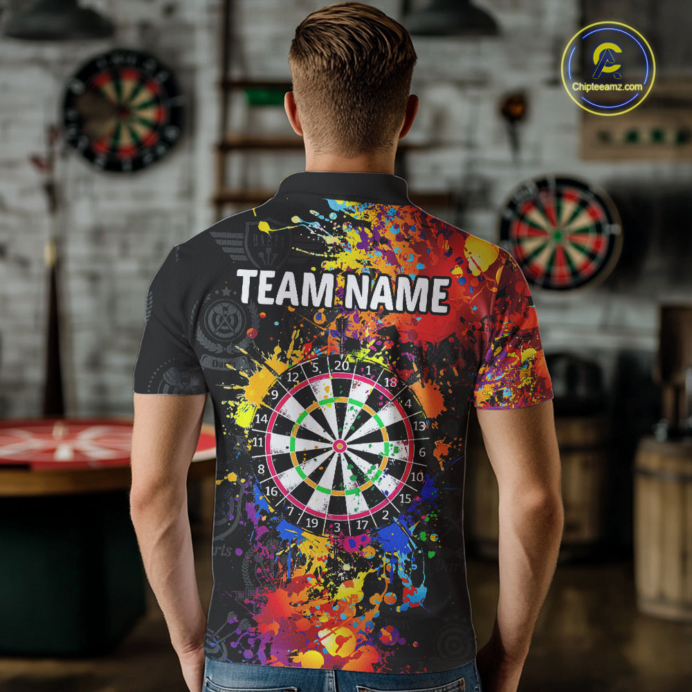 Colorful Paint Men Quarter Zip Dart Shirts With Pocket Custom Darts Jersey TDM1894