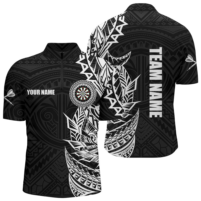 Personalized Black White Tribal Darts Polo & Quarter Zip Custom Dart Shirts For Men Dart Jerseys TDM2782