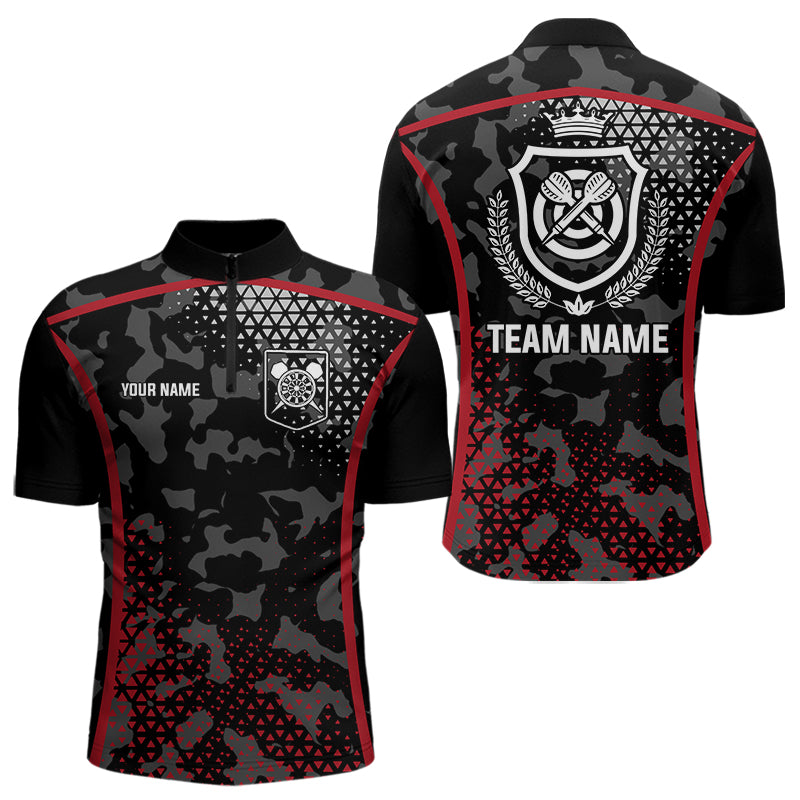 Black And Red Camo Dart Shirt With Pocket Option For Men Custom Darts Jersey TDM3787