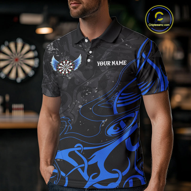 Black And Blue Custom Wings Darts Shirt For Men, Darts Jersey Pocket Option TDM3840